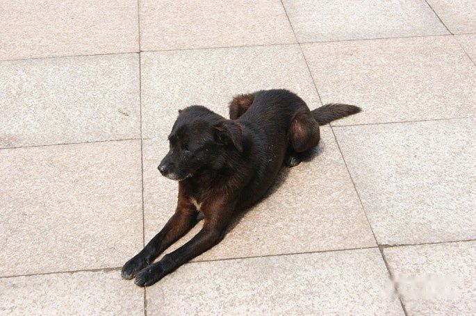 大门外,悠闲的小黑狗~~~