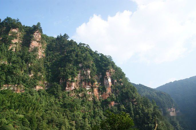 从入口到佛光岩有1000多米,然后绕行到五柱峰1000多米,再下山1000多米~~~