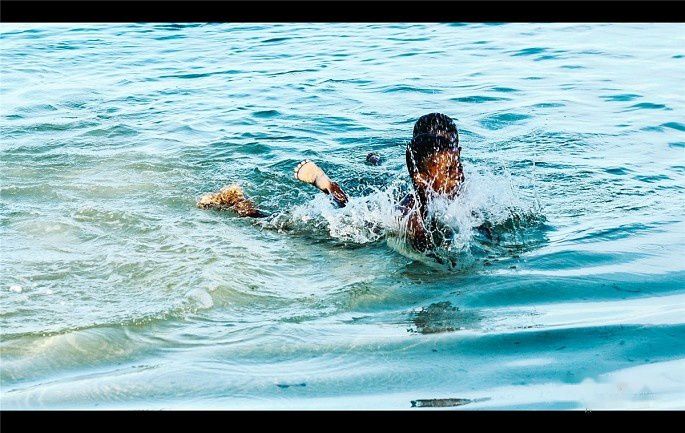 【午后,少年们在水中,无忧无虑地尽情欢愉】