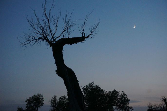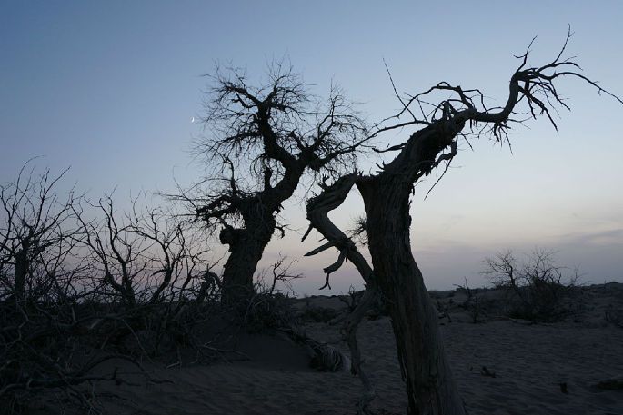 怪树林位于达镇西南约35公里,该区内百年前是一片原始森林,由于自然因素,大片枯死的胡杨树东倒西歪,神态各异,其奇异的造型给人以死一般的沉默和童话世界中的仙境奇观.。胡杨是树木中起源最早的类群,被称之为植物的“活化石”,一棵胡杨的主根,可以穿越地层一百多米,“生而不死一千年,死而不倒一千年,倒而不朽一千年”。如此顽强的生命最终还是敌不过大自然的恶劣。