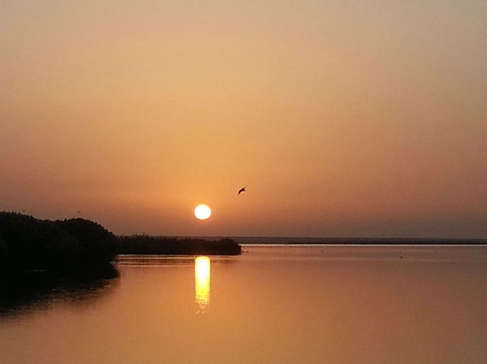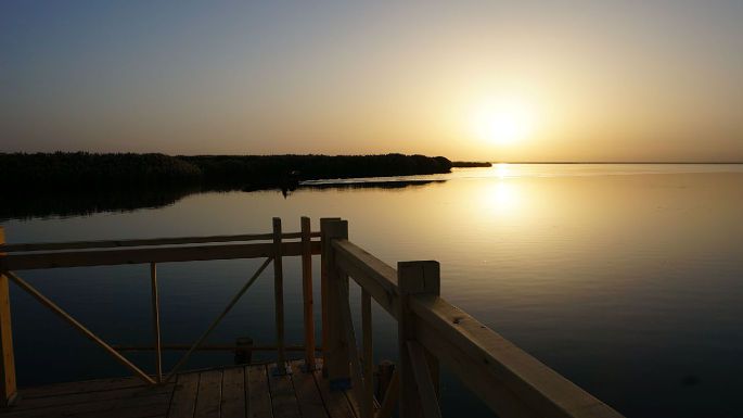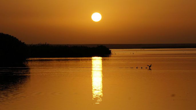 居延海位于内蒙古阿拉善盟额济纳旗北部,形状狭长弯曲,有如新月,额济纳河汇入湖中,是居延海最主要的补给水源。居延是匈奴语,《水经注》中将其译为弱水流沙,在汉代时曾称其为居延泽,魏晋时称之为西海,唐代起称之为居延海,现称天鹅湖。