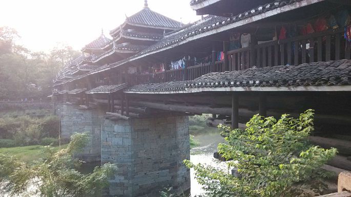 下午又是一段舟车劳顿,下山又是堵车及汽车流量控制,个人建议如果遇上这种情况,可以步行20分钟到景区接送车达到处(唯一一个看到的岔口),因为是空车下去的,楼主和另外4个姑娘花费10元请师父带楼主们一程,花费1.5小时到景区入口,步行5分钟到达和平乡加油站,坐中巴或者摩的去龙胜县城,坐上龙胜去三江的班车,路途2小时,网上描述的龙胜去三江时间是错误的,是每隔40分钟就有一辆班车,而不是1:30后下趟班车就是3:00,最晚班车差不多要到5点,达到三江河东汽车站后,步行5分钟过友谊桥达到河西汽车站,坐上去林溪乡的班车,在程阳桥风景区下车,耗时半个小时左右,千万不要听司机的买半价票进去,坑人的。入住的是马安寨民族民旅,由于去哪里订单出错自己直接现场找的旅店,无空调,标间100元,每层双公卫,小老板人不错,住楼主斜对面(他哥哥的新婚房O(∩_∩)O~)。