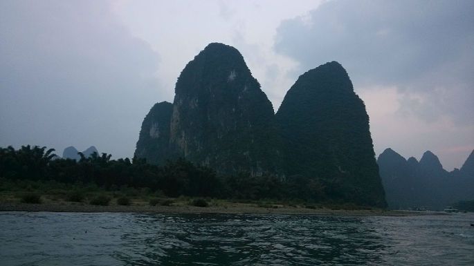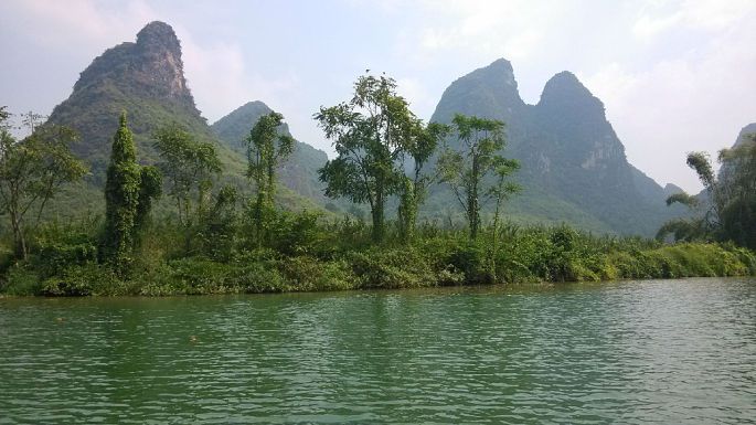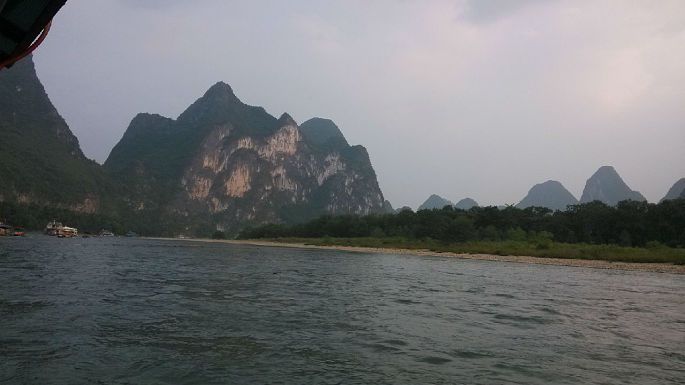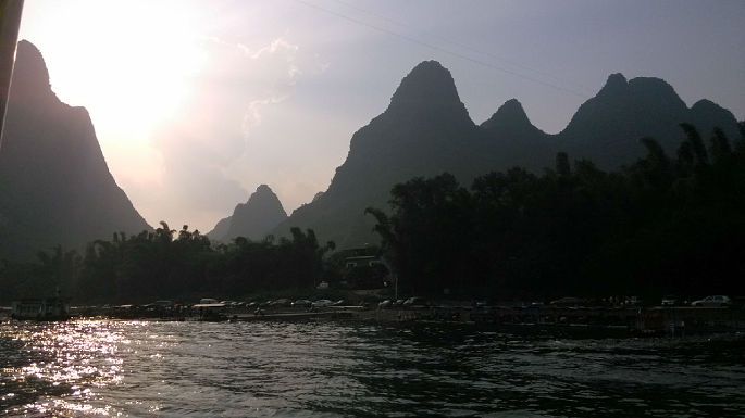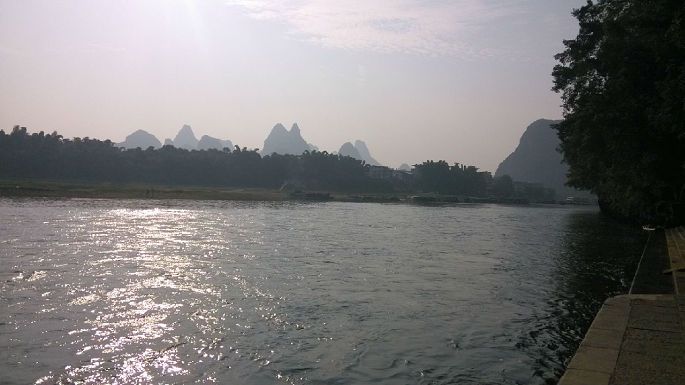 舟车劳顿啊,楼主苦逼,没能买到9:30出发的直达班车的票,只能先换乘9:40去龙胜,再转车去桂林,到达桂林琴潭汽车站已经下午两点,楼主会说楼主又在和平乡加油站三岔口处堵车了吗!从琴潭汽车站做公交耗时10分钟左右前往桂林汽车总站,坐上3:00加开的直达杨堤码头的班车(最晚班车了,一个小时一班),要玩杨堤——兴坪漓江游的请提前订好竹筏,楼主刚好与同车的一家人拼筏,一个人140,一筏4人,4:20到达杨堤。楼主在竹筏上的1个半小时内又开始发困了,过了九马画山就没劲了。中间与筏工起了纠纷,个人建议上船了就不要就船速与筏工纠缠,事后那啥办法多了去。我做的差不多是最晚的筏子,如果不是赶时间不要选择,一是光线不好,还有就可能遇上楼主碰到的事情。