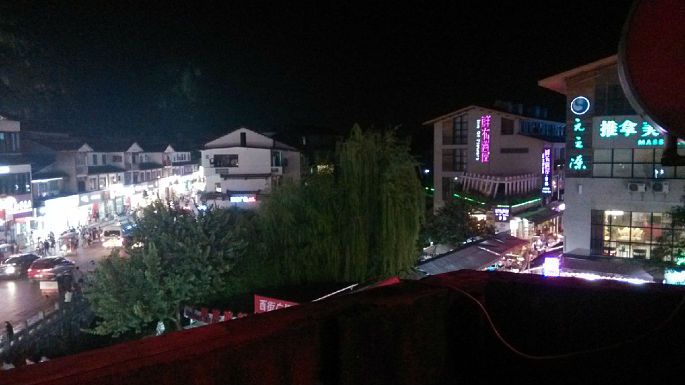 下兴坪码头是黄昏,做电瓶车出码头,步行去兴坪汽车站,花1小时去阳朔,楼主感觉自己有一半时间花在了坐车上!楼主在县城入口下了车,步行经过西街,人挤人,满大街拉客去看“印象刘三姐“,还有那满大街的啤酒鱼啤酒鱼,楼主已经对桂林的美食失望了,酸辣!入住的是阳朔瓦舍国际青年旅舍(叠翠路与桂花路交叉处),繁华中不失安静,六人间(120元/床位),每层4公卫,有空调,有一个很大的阳台,楼主晚上就在这里发呆。