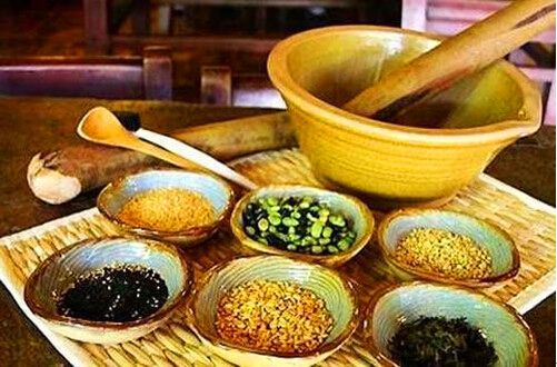 3、擂茶粥,各种作料放在一起捣,还挺有一番风味的。