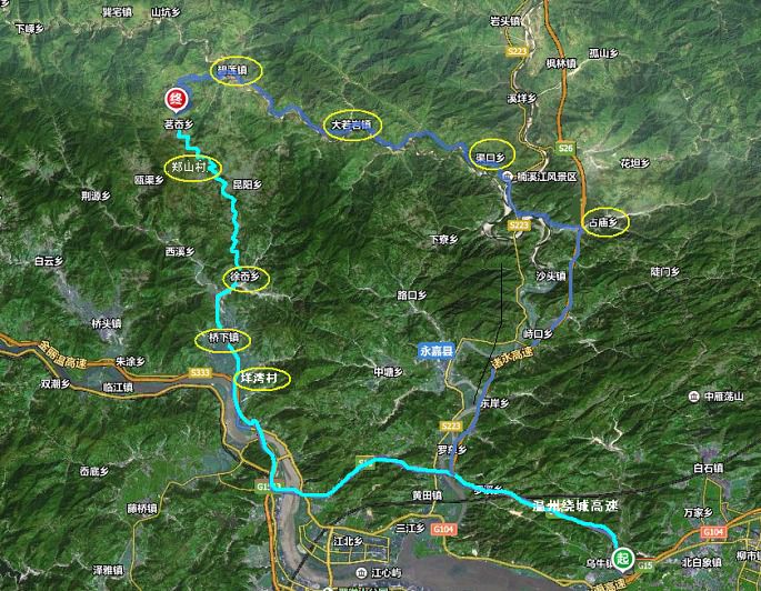 b.温州绕城北线梅岙高速下,转至桥下方向,经桥下镇-徐岙-郑山-茗岙(路程较短)。