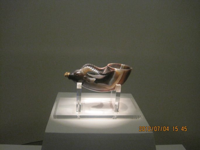 陕西历史。具体的不说了,因为太多了:蓝田猿人的头骨化石、半坡遗址的人面鱼纹盆、周朝的卜骨和甲骨文、周天子的“鼎”和礼仪制度、汉朝的“雁鱼铜灯”、吕后的“皇后玉玺”、唐三彩骆驼载乐佣、秘色瓷、耀州窑代表作青釉提梁倒灌壶、兽首玛瑙杯(永远不许出国展出的国宝)等等等等。近视眼悲催啊,看不清啊,忘情的往前凑,