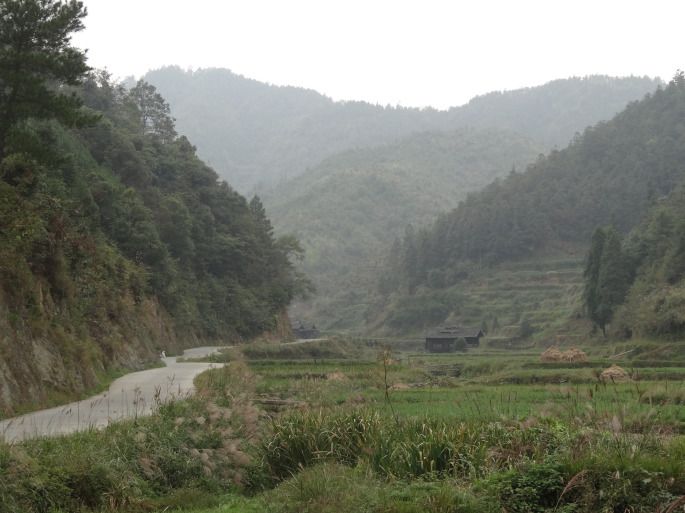 无论是从通道还是黄土去芋头古寨,都在红香路口下车,红香寨在通道往黄土的路上。在红香路口的小卖铺我买了瓶水,顺便请老板帮我找个摩托送我去芋头。从红香到芋头约4.2公里,基本上坡,要价10元,我觉得价格公道。这里买东西是实在给价,而非漫天要价就地还钱,我喜欢这样。