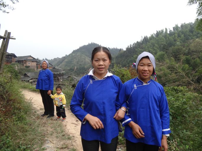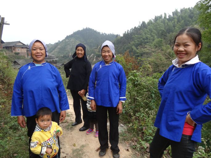 在小路上闲逛,碰上独坡金坑村来吃酒的几位大嫂。她们见我手里有相机,笑嘻嘻地要求我给她们照相。她们看着特别快乐,蓝色的民族服装特别好看。照完像我向她们要地址,她们都说不要照片,就是为了好玩。我还是要了地址,回来后把照片寄了过去,我想象她们收到照片后的快乐。