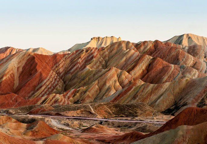 对于张掖丹霞很早就想去看看了。记得第一次知道这个地方是因为看了老谋子的《三枪》,如此色彩斑斓的山丘,也是醉了。抵达张掖丹霞景区已是下午5点左右,刚好可以赶上拍日出。张掖丹霞景区目前有4个观景台,这给大家提供了很多方便。我们跟着摄影领队小王先登上了1号观景台欣赏和拍摄这里绚丽的日出,然后乘坐景区的观光车依次游览其他几个观景台。最看不惯的就是一些摄影师,为了拍到好片子,在丹霞山上随意攀爬行走,本来这里风化就比较严重,这下更惨了。