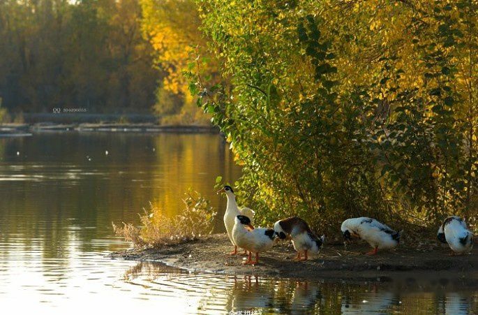 这里的湖水蓝的有些不可置信,倒映着高高低低的胡杨身影,不时有几只鸭子悠闲的从水中滑过,留下细细的波纹,我赶忙拿起相机,将这美好的镜头记录下来。