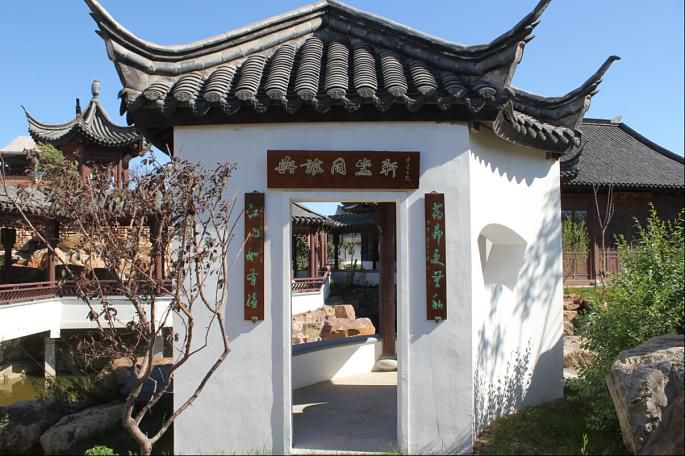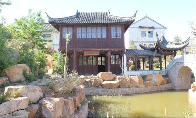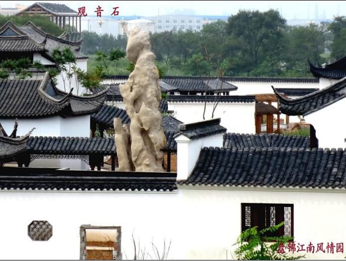 江南风情园位于辽宁省盘锦市辽东湾新区翠霞湖畔,该园汇集世界文化遗产 的苏州拙政园、留园、沧浪亭和环秀山庄、扬州四桥烟雨、杭州六公园、长桥及浙江临海东湖湖心亭八园为一园,与翠霞湖相互衬托,景色宜人。园中绘画、版刻、徽雕、堆雕、匾额、楹联等非物质文化遗产炫目夺人,更有花木叠石寄情。同步建有梅园国际大酒店和以古建筑为载体的商业街,酒店内小桥流水、绿荫绕堂,让入住客人在酒店中感受古建筑文化艺术美景;商业街中各种文化艺术、字画、茶艺、全国知名小吃和各种旅游商品汇聚一起,使游客能享受到吃、住、游、玩、赏、购,同时,感受到北国江南美景,释放工作压力,舒展人生情怀。江南风情园是中国近三百年除圆明园外最大的私家园林,填补东北地区两千年无园林历史空白。