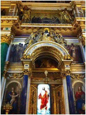 话不多说,来俄罗斯的第一站是冬宫艾尔米塔什博物馆。走入馆内,H帮我寄存了大衣,A则跟在我旁边开始给我讲解。走完冬宫,来到伊萨克教堂,听A说,东正教在民国时期也有进入过中国传教,但因为中国的好酒多,一批批东正教教士经常酗酒闹事,导致东正教当时直接被拉黑。所以说好酒有度,酗酒坏事撒!