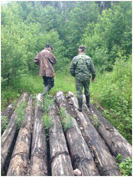 下车,走向营地。图右的大叔是退役军人,普京在这里的向导。老枪神!
