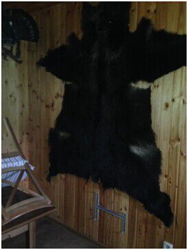 这是我指着的那头熊,主人专门从他家里带回来挂上的。
