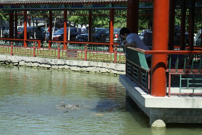 “您好!老先生您在钓鱼哪?”我转过头看见一对中年夫妇和一对老年夫妇站在我身旁。我让他们在身边的椅子坐下。