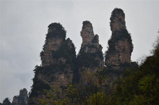 十里画廊的三姐妹峰在欢迎我们的到来。