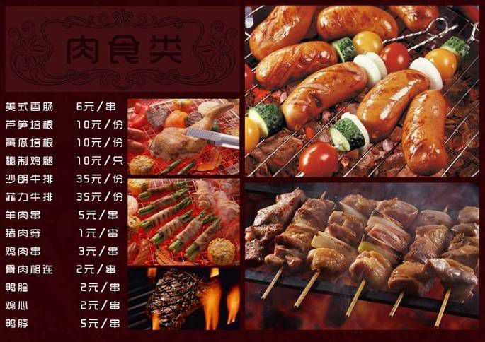 烧烤类食材价格表:(炉灶租赁20元/天,木炭10元/炉)