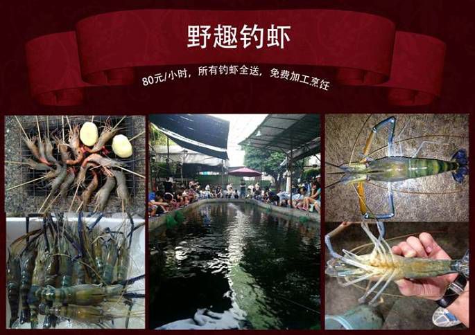 钓虾活动:提供钓杆一套,饵料,虾笼(场地位置有限,须在报名活动时注明提前预约钓虾)