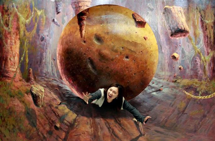 相机:3D画展所需的拍照器材并不专业,高像素手机或普通全自动相机均可。因为和3D画作合影需要拍摄整个场景,使用单反相机的观众尽量使用变焦镜头,避免使用定焦镜头,这可是拍摄者的二次创作呢。不过,要拍出逼真效果,拍摄者和相中人要好好配合,找到设置在画作附近的“最佳拍摄位置”标志,往上面一站,保证能拍出有趣的立体作品。爱玩爱新奇的你,也可以挑其他位置站站,说不定拍出“扭动”的意外效果哦!