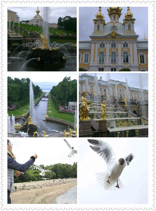 富丽堂皇的夏宫坐落于芬兰湾南岸,距离市区约29公里,是1714年由彼得大帝下令并亲自督造的,因而又被称为彼得宫(Peterhof)。因其豪华壮丽的建筑风格,夏宫也被誉为“俄罗斯的凡尔赛宫”,被联合国教科文组织列入《世界遗产名录》。夏宫分为上花园和下花园,我们一行人径直进入了下花园。下花园的大宫殿前是大瀑布的喷泉群,这里有37座金色雕像,29座潜浮雕,150个小雕像,64个喷泉及2座梯形瀑布,因此夏宫有“喷泉之都”、“喷泉王国”的美称。在喷泉群一个大半圆形水池的中央,耸立着大力士参孙和狮子搏斗的雕像,参孙双手把狮子的上下颚撑开,泉水从狮子口中冲天而出,水柱直喷22米之高,这就是著名的隆姆松喷泉。游走或驻足于喷泉的各个角度,蓝天白云映衬下的喷泉造型闪耀着鎏金溢彩。那天,我们还徜徉于夏宫尽头的芬兰湾港口,远眺波罗的海入海口,遥想当年彼得大帝为了打开海上通道联通欧洲,从瑞典人手中夺取了这个波罗的海的出海口,并一手兴建起了这座古老的城市-圣彼得堡!