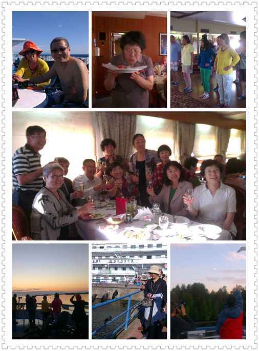 这条船上的游客大约有200多人,主要来自西班牙、法国、荷兰、俄罗斯等欧洲国家,中国游客除我们20人外,还有个上海团队大约也有20人左右。在船上的11天里,这些世界各地来的朋友,一起看风景、一起日光浴、一起唱歌、一起跳舞。。。组成了一个快乐的临时大家庭。