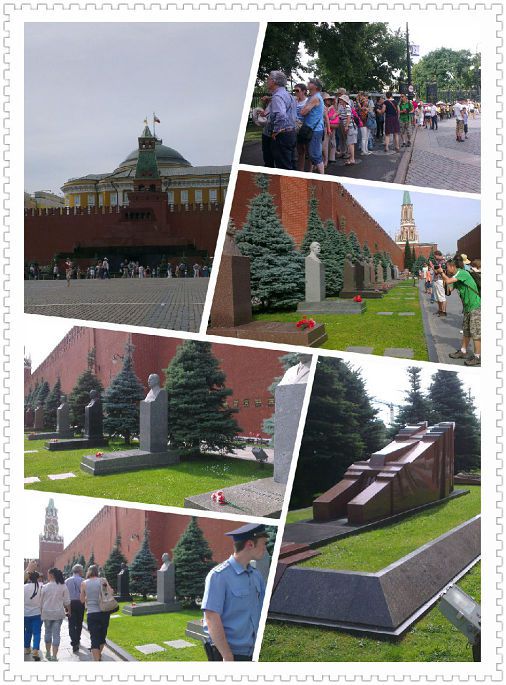 列宁墓的后面与克里姆林宫红墙之间,有12块墓碑和头像:其中包括斯大林、勃列日涅夫、安德罗波夫、契尔年科、捷尔任斯基等前苏联政治家;沿着克里姆林宫墙往前走,墙壁上还安放有朱可夫元帅、列宁的妻子克鲁普斯卡娅、高尔基、第一位宇航员加加林及其他前苏联名人的骨灰。