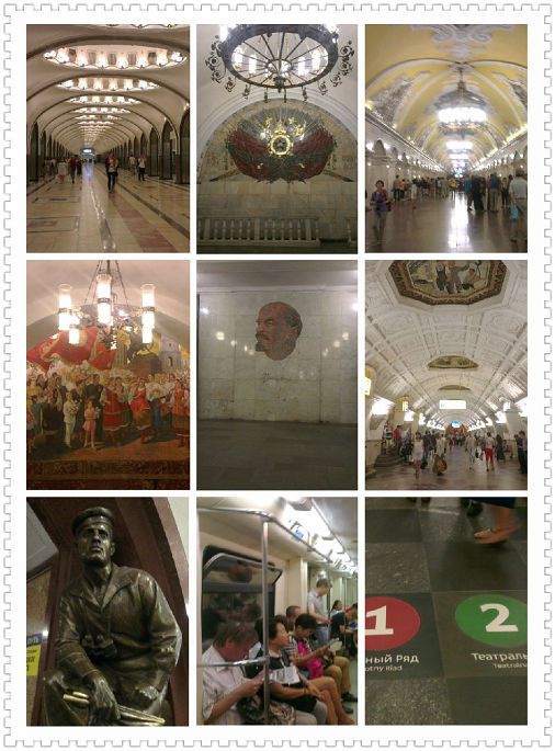 一直听闻莫斯科地铁与众不同,特别漂亮,此行的亲身经历真真感受到了它的震憾。我们快要离开俄罗斯的那个下午,几个队员相约逐一参观几个不同特色的地铁站台。莫斯科地铁在深深的地下,自动扶梯安装在拱顶通道中,长达七八