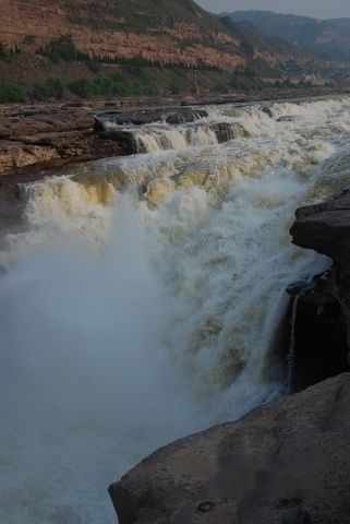 早上6点多起来,吃了此行最贵的早餐,景区是7点售票,壶口瀑布门票91元/人,景区停车费10元。购票开车进去,行车五分钟到达景区停车场,景区人很稀少,一是去的时间早,二是现在不是旅游旺季,这个时间壶口的水流量不是很大,之前从网上了解说的是观壶口瀑布宜在山西一侧,因为黄河主流贴近山西,山西一侧的河岸也高于陕西2—3米,更亲近黄河也更壮观。这里还有地下龙洞,上有华国锋题字“黄河奇观”,游人可走到瀑布下方仰视瀑布,拍出瀑布全景更震撼。我的实际感受是,从壶口两岸观瀑景色都很壮观,各有优势。山西这边没法离瀑布近,但是能看到整个瀑布的全貌,可以很好的取全景。陕西这边可以很近的接近瀑布,比较适合拍摄留念照片,但是看不到全貌,只能看到部份,不过在水大的时候也不能进到瀑布,如果太阳很好,上午在山西一侧很容易看到彩虹,因为是顺光,下午在陕西一侧是顺光,在水量不是很大时,山西一侧沿一个洞中的石阶可以下到瀑布底下,完全零距离接触瀑布。不过,进洞每人要门票(21元),还要有被淋成半个落汤鸡的准备。总之,看全景去山西,想近距离接触在不是汛期时陕西进,最佳观赏时间应该是9月份。