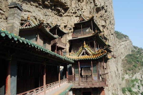 早上从浑源县出发去悬空寺,距离很近,开车十来分钟就到了,悬空寺从外观上看很小,初到的时候感觉有点失望,即来之则观之,门票130元,进了悬空寺,倒感觉另是一番景色,辗转在搭建巧妙、布局别致的殿堂里,真是腾挪之处见天地,千年的古寺已经有点不堪负重了,说不定过几年后就不让人进寺浏览了,寺中有座殿堂供奉着佛祖、老子、孔子三个塑像,是唯一的一座佛、道、儒三教合一寺庙。三悬空寺还是很值得一玩的。