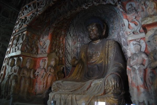 中午抵达云冈石窟,购票进场(票价150元),景区中间的灵云寺没什么值得观赏的,可以省略不看,游览云冈石窟最好是从1号石窟开始,按序观赏,一直到20号窟。如果不找导游,最好是买份导游图,五元一份,看导图上的解释再和实景结合起来,也能有所了解。看完石窟可再去博物馆,也是值得一看的。