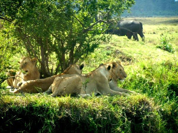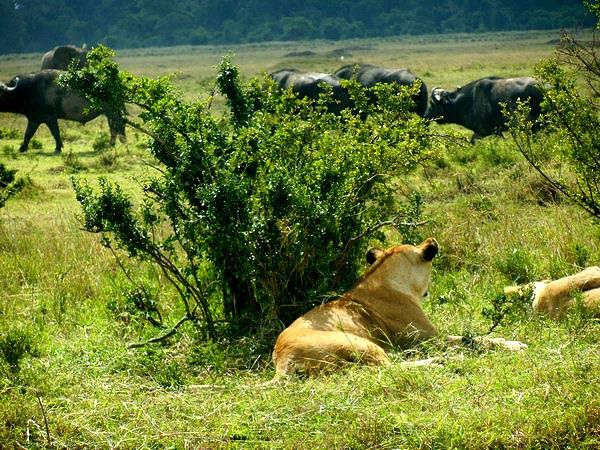 一路上居然时不时地看到狮子、大象、非洲水牛