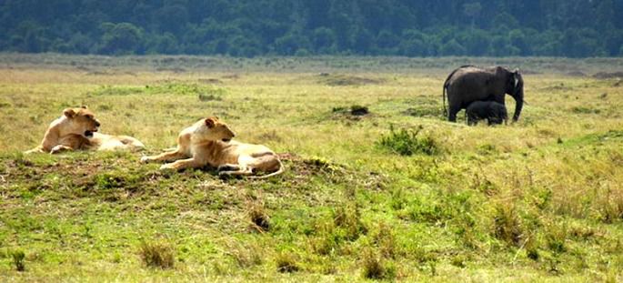 狮子、大象和谐地相处,俨然没了那种可怕的故事发生!