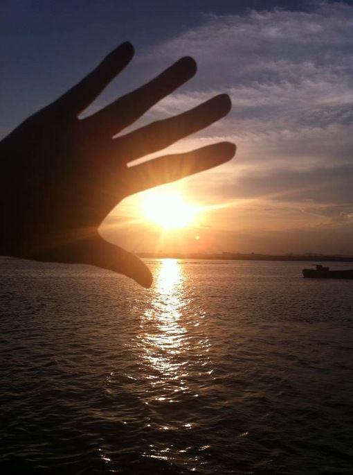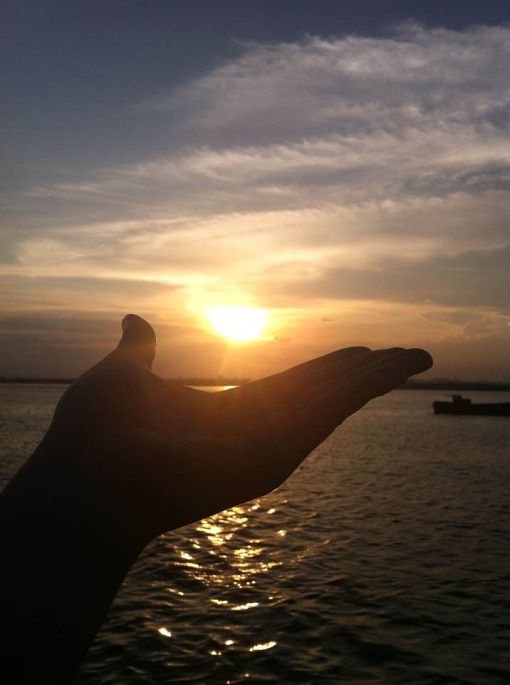 美美的夕阳在我手上,真想塞进嘴巴吃了,哈哈