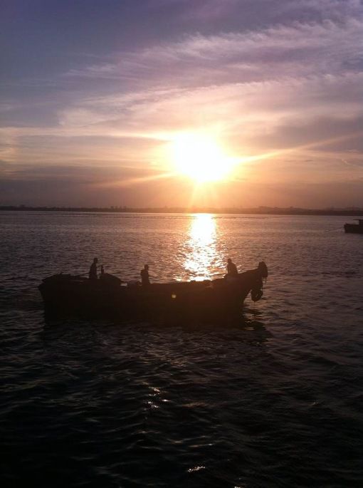 晚上拍照有点阴森,哈哈,不管了我就喜欢坐船。要留个做纪念。