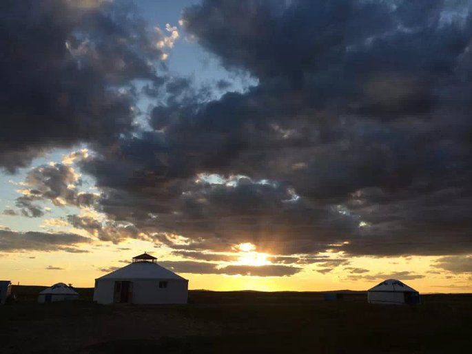 今天大家初次见面,弓长张在我的在三催促之下最后一个下楼。朱振,丽娃子迎来了他们的新婚蜜月之旅,我们本期年龄最大的哥哥主动担当本次的财务——就是我们的村长,简单的介绍,寒暄之后我们出发了,从海拉尔开往满洲里的路上,天气特别给力,处处蓝天白云,云海密布,不断的惊叹与震撼,大草原赋予了人类无限的力量,会使人瞬间平静,沉淀内心,沉淀自我。呼伦湖是北方第一大湖,面积是香港的二倍,是呼伦贝尔大草原之肺。套娃广场,获得世界吉尼斯纪录,是世界上最大的套娃广场。国门,神圣而尊严,但是现在变成了景区,商业化很浓,80元/人,不值得进,我们就远远的望了一下,晚上嘎骆驼渔村宿营,蓝天白云倒映在渔村的水面,牧人正赶着牛群、羊群回家,我们搭帐篷,今晚宿营嘎骆驼,有人说嘎骆驼是本次最美的,最值得回味的地方,晚上我们躺在草地上数星星,烧烤,煮泡面,摔跤,唱歌,玩牌~~~PS:这里的狗狗特别招人喜欢,能听得懂英语,弓长张演绎了一场人狗情~~~晚上突然下起大雨,这是对我们的考验,最终陈队,小胡和眼睛的帐篷被吹到,无家可归,但是他们却目睹了草原上最美的日出,此情、此景唯有嘎骆驼,你懂的~