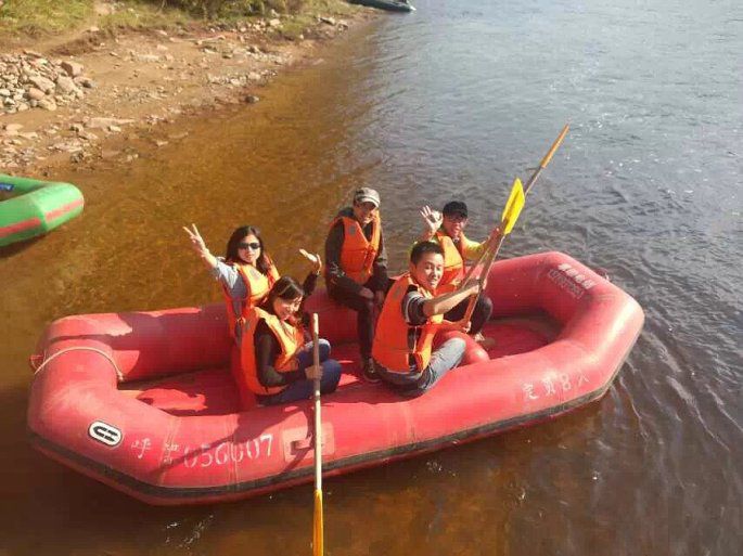 在鸟儿的欢笑声中醒来,恬恬的清晨,不可思议的美好。队友们不约而同去漂流,观苍茫白鹭岛,清澈的河流,给力的队友,欢呼声,感叹声,静静的闭上眼睛,听流水声,风声,呼吸声……静静的,悄悄的,顺着溪流慢慢流淌,我们不温不火的性情,把漂流性致达到极致,同时也急坏了白鹭岛漂流的工作人员,开始担心我们的安危。敖鲁古雅一个神秘而悠久的名字,一群以驯鹿为生的原始部落,在极寒的条件下,印证了生命的宏大与不息,他们是北纬50°生命的标本,是圣诞老人出发的地方,晚上入住根河,中国冷极,驯鹿文化之都。根河住的人家养了可爱的小白兔,梅花鹿。