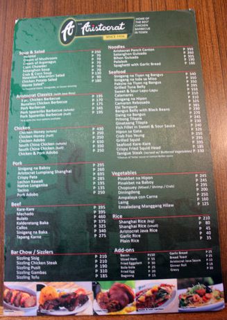 海鲜:五天行程吃了两次海鲜,第一次是马尼拉的时候,吃的是龙虾,和我在广州黄沙水产市场的吃的差不多,味道做饭也差不多,没有什么新鲜感,先市场上买好海鲜,然后到酒店加工, 一般的加工费就200元人民币左右,而且那个时候我还买贵了,没有跟他砍价,听说在海鲜市场买海鲜的时候要对半砍,这样子才不会被宰。
