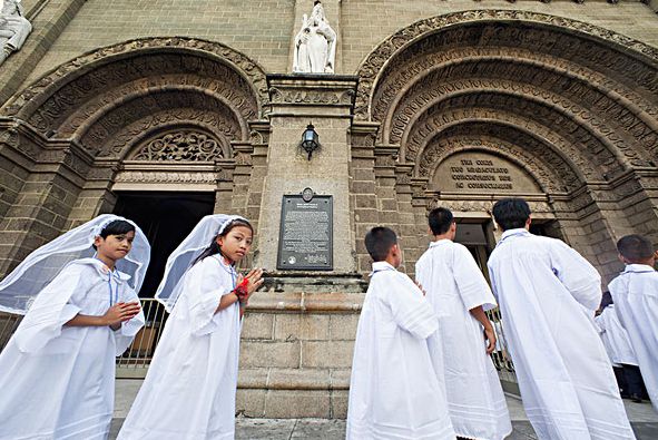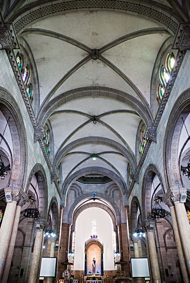 马尼拉大教堂是马尼拉天主教大主教管区的主要建筑,最初的教堂建于1581年,在以后的岁月中教堂因台风,地震,和战争的火焰不断被损毁,不断重建。现在的教堂已是第六次修建的成果,借鉴了老教堂的石雕和玫瑰形雕刻窗子。