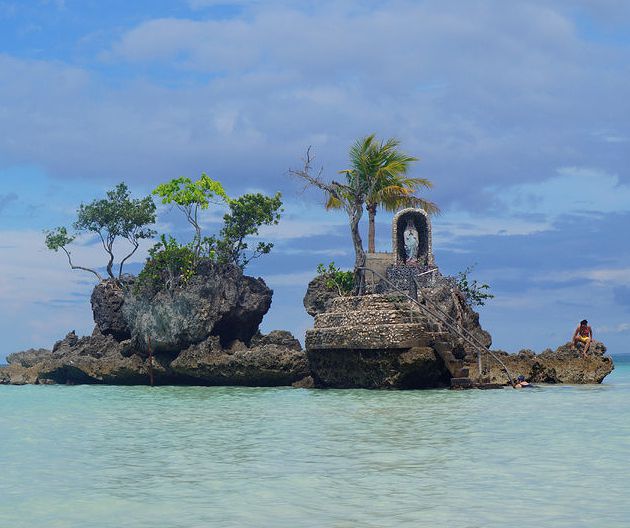 看介绍说,长滩岛最有名的礁岩是圣母岩礁(Willy's Rock),岩礁矗立在海中,当地的居民在上面供奉了一尊圣母像,所以取名圣母岩礁。