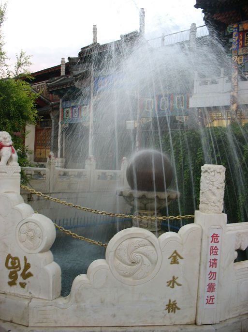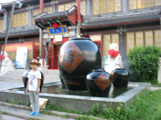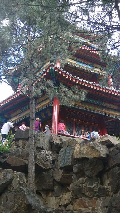将近12点,出塞罕坝国家森林公园,奔避暑山庄,8月4日下午4点多钟到承德,过避暑山庄丽正门,在附近找一宾馆住下,在丽正门斜对过大清花饺子吃晚餐,餐后浏览避暑山庄外围。