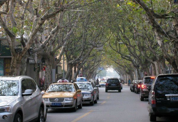 愚园路,街面不宽,但路旁种植的法国梧桐树还算过得去吧