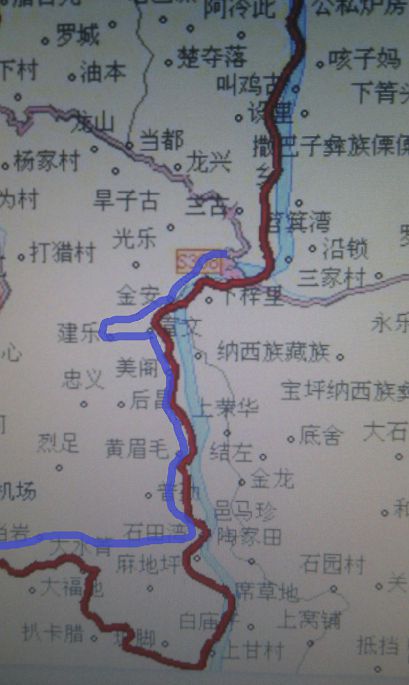 线路1(蓝色):丽江-金安桥前-下金安-马尾岩或羊见-美阁-黄眉毛-金安移民新村-金安乡府(产构村)-大水箐-七河,2天,约100公里。