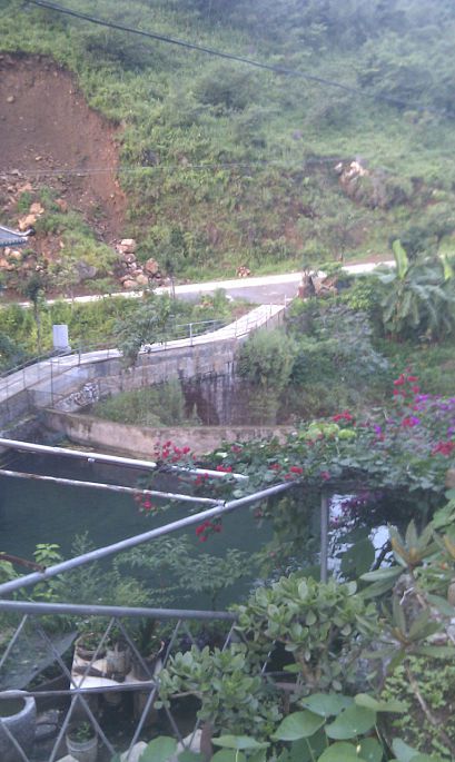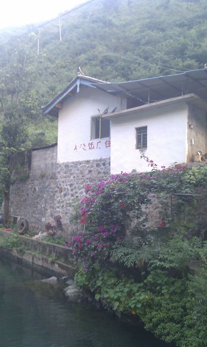 从乡政府出来步行不到十分钟就找到温泉山庄。山庄有不少客房,给我们安排了三间,每间六十元,还是干净舒适的。问到温泉,原来是山庄过去步行五分钟可达的一个六十平米左右筑坝形成的水塘,山脚冒出的泉水,有点温暖,水深不到一米,就在大水箐河边,是灌溉用的水塘,因而是免费的。我们下水塘好好泡了近一小时。这是难得的福利啊!