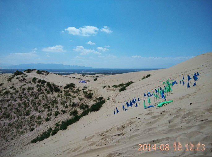 师傅说这时间北线没那么好,我们就沿南线返回去金沙滩,玩沙,爽!大片的沙丘连着沙丘,爽!遗憾没骑马,策马狂奔是我超想的。