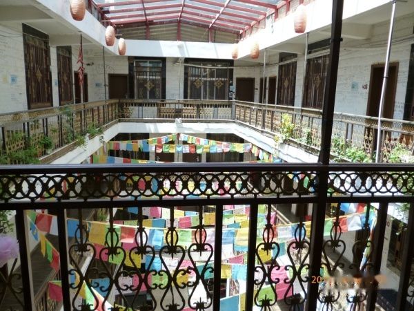 ——店面其实很小,不过走进巷子,里面别有洞天:一家四合院式的青旅,总共5层楼。