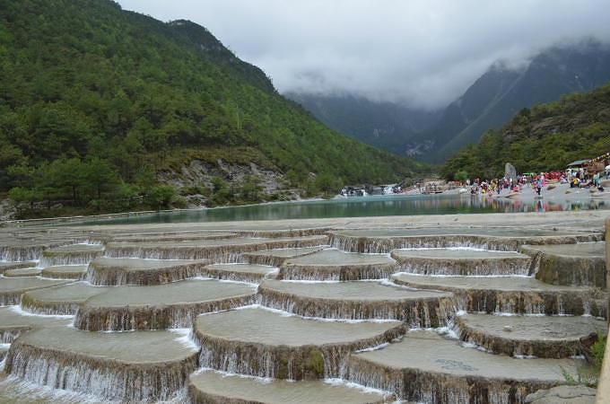 从雪山下来,到了蓝月谷,新鲜的空气,美丽的景色,朋友的关心,小和尚的善意,渐渐平息了我的高原反应。小和尚说蓝月谷有小九寨沟之名,我觉得一点也不为过,景色真的很美。只是天公不作美,加上拍照水平有限,照片将就看吧,实景比照片美多了。
