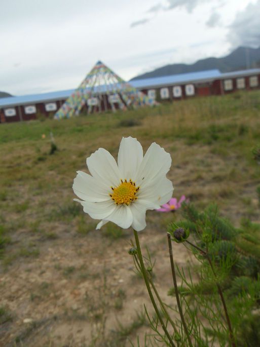我一直以为这是格桑花,后开看到相关的书籍介绍才发现,下图的花叫“张大人花”,花名与清朝末年的驻藏帮办大臣张荫棠有关。据说,十三世**特别喜欢花草,但是由于拉萨位于3000多米的高原上,因此花草很少。张荫棠得知后,亲自带了各种花籽入藏,并将花籽赐给十三**及拉萨的达官贵族和高僧大德们试种,结果,其他花籽无法生长,唯有一种花籽长出花瓣来,此花呈“八瓣”状,似小型蝴蝶,分红、粉、白三色,花茎细长挺直,叶成齿轮状,能抗风沙、耐严寒,清香似葵花。一时间,拉萨家家户户都争相播种,很快传遍广大藏区,然而谁都不知道此花何名,只知道是驻藏大臣张荫棠大人带入西藏的,因此起名“张大人”。当时,西藏通晓汉语的人很少,而会说“张大人”这一词汇的藏族同胞却大有人在。直到现在,许多不会说汉语的藏族老人谈论此花时,也能流利地说出“张大人”这3个汉字。“张大人”花,无疑成了纪念张荫棠这位驻藏大臣丰功伟绩的象征。 “张大人”花瓣似小型蝴蝶,分红、粉、白三色,花茎细长挺直,叶成齿轮状,它的学名为“波斯菊”,内地人称“扫帚梅。