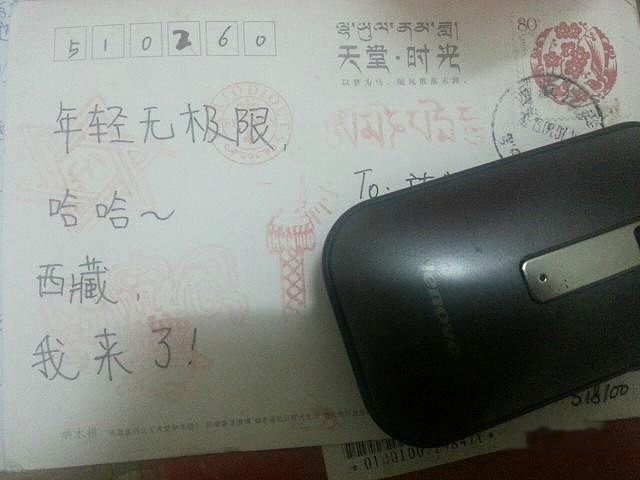 在我还没有出发之前,西藏——对我来说是一个梦,一个遥不可及的梦。在2013年的8月,它不再是我的梦啦,因为我来了!为了纪念我有来过,给自己寄了一张明信片。