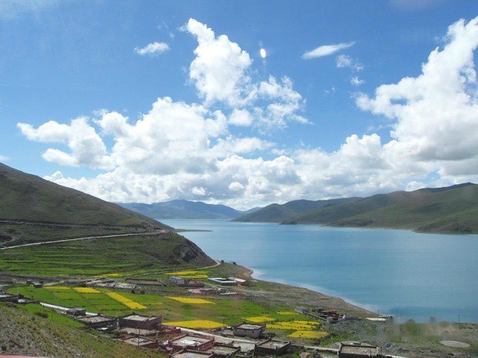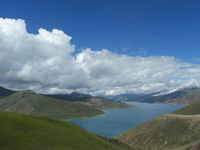 羊卓雍措被誉为世界上最美丽的水。羊卓雍措,“羊”,上面;“卓”,牧场;“雍”,碧玉;“措”湖。连起来 就是“上面牧场的碧玉之湖”。这是字面上对羊湖的解释,而羊湖在藏人心目当中被看做是“神女散落的绿松石耳坠”,因为无论你在那个角度,都不能看到羊卓的全貌,她有三个姐妹,空母错,沉错,巴久错,以即古羊卓雍错四姐妹在巨大的湖盆中,手足相连,难以割舍,共同组成了让我们肉眼看不到边的圣湖。她的身躯蜿蜒在群山中达一百三十多公里,只有在地图或是高空你才能惊喜的发现她犹如耳坠,镶嵌在山的耳轮之上。不同时刻阳光的照射,她会显现出层次极其丰富的蓝色,好似梦幻一般。